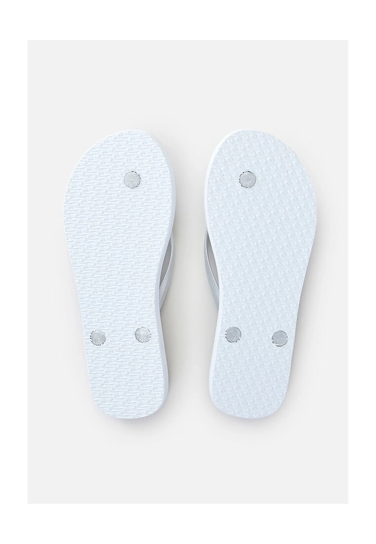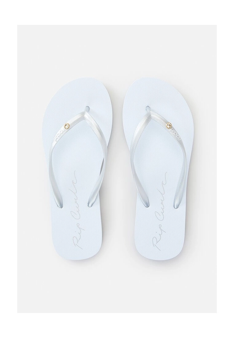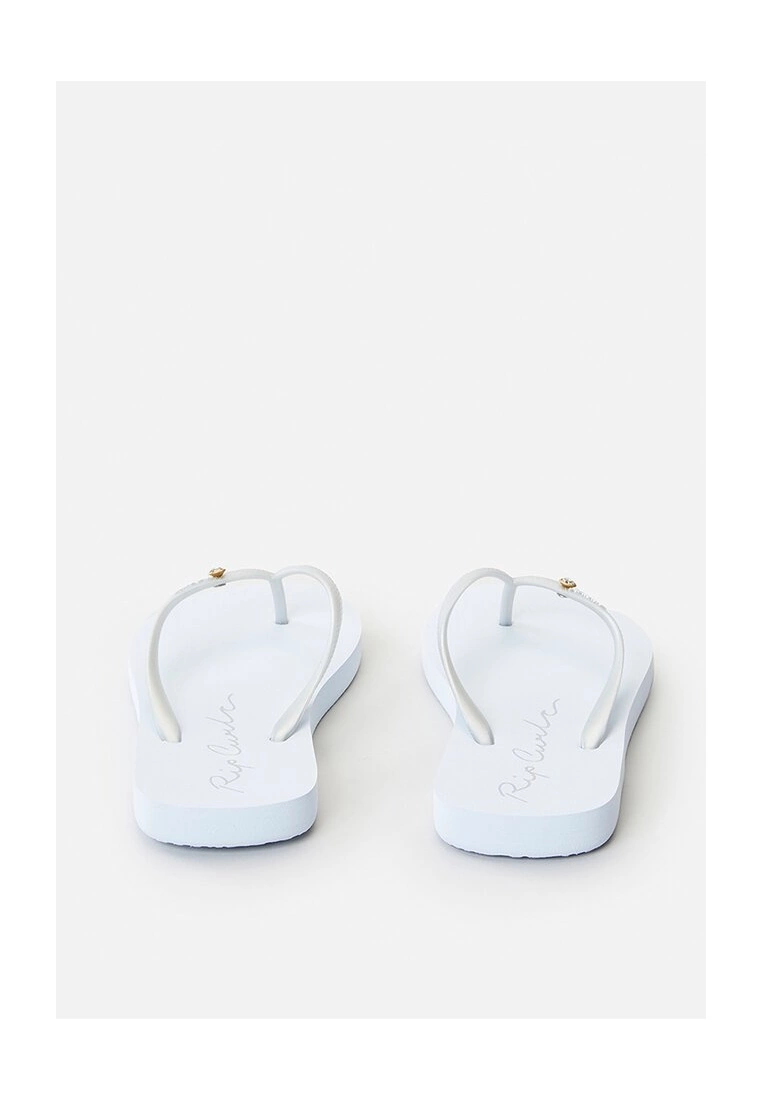 – Solid tone flip flops with contrast brand detail in italic