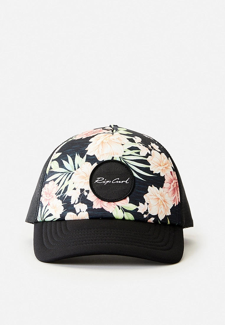 – Multi tone tropical print mesh back trucker cap